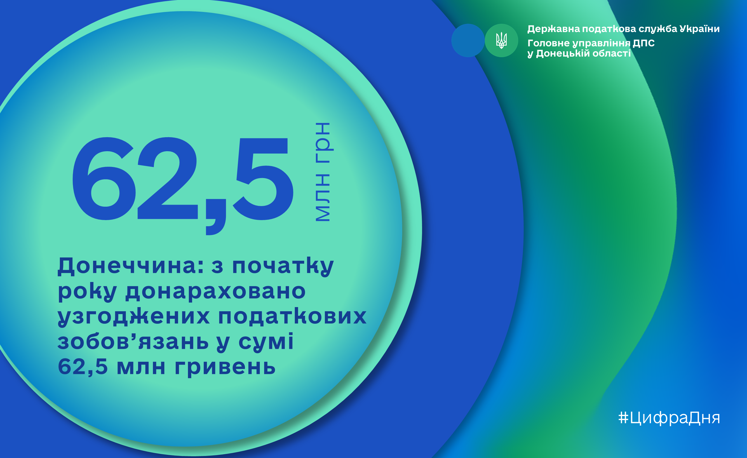 Донеччина: з початку року донараховано узгоджених податкових зобов’язань у сумі 62,5 млн гривень
