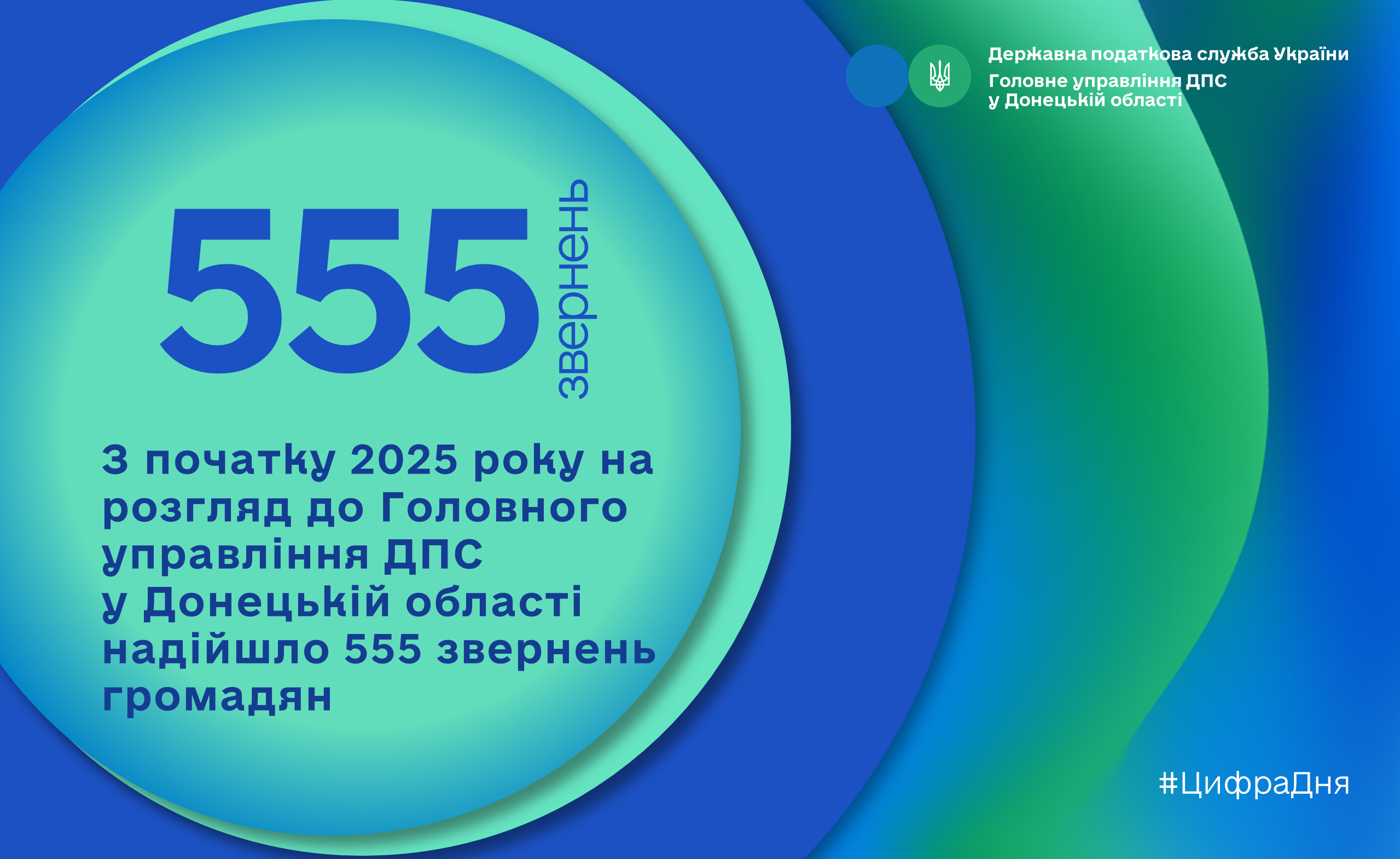 З початку 2025 року на розгляд до Головного управління ДПС у Донецькій області надійшло 555 звернень громадян