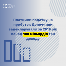Платники податку на прибуток Донеччини задекларували за 2019 рік понад 100 мільярдів грн доходу
