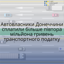 За п’ять місяців 2020 року власники транспортних засобів Донецької області перерахували до місцевих бюджетів майже 1,6 млн грн транспортного податку. Зокрема, громадяни сплатили 595,7 тис. грн, а внесок юридичних осіб – власників автомобілів до місцевих бюджетів області склав 954,5 тис. гривень.