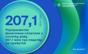 За січень - жовтень поточного року платники податків – юридичні особи Донецької області сплатили до державного бюджету 163,6 млн грн, що вище відповідного періоду 2024 року на 19,4 млн грн, або 13,4%, а до місцевих бюджетів – 43,5 млн грн податку на прибуток. Загалом, до зведеного бюджету Донеччини надійшло 207,2 млн грн цього податку.