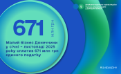 Так, за січень - листопад 2025 року суб’єкти господарювання, які перебувають на спрощеній системі оподаткування, спрямували до місцевих скарбниць Донеччини 671 млн грн єдиного податку.