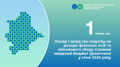 Понад 1 млрд грн податку на доходи фізичних осіб та військового збору отримав зведений бюджет Донеччини у січні 2026 року