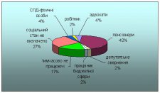 За соціальним станом авторів письмових звернень найчастіше звертались пенсіонери – 20 письмових звернень (41,7%). 13 громадян свій соціальний стан не визначили, або 27,1% від загальної кількості письмових звернень. 7 заяв надійшло від тимчасово не працюючих, по дві заяви від ФОП та від громадян, що здійснюють незалежну професійну діяльність.