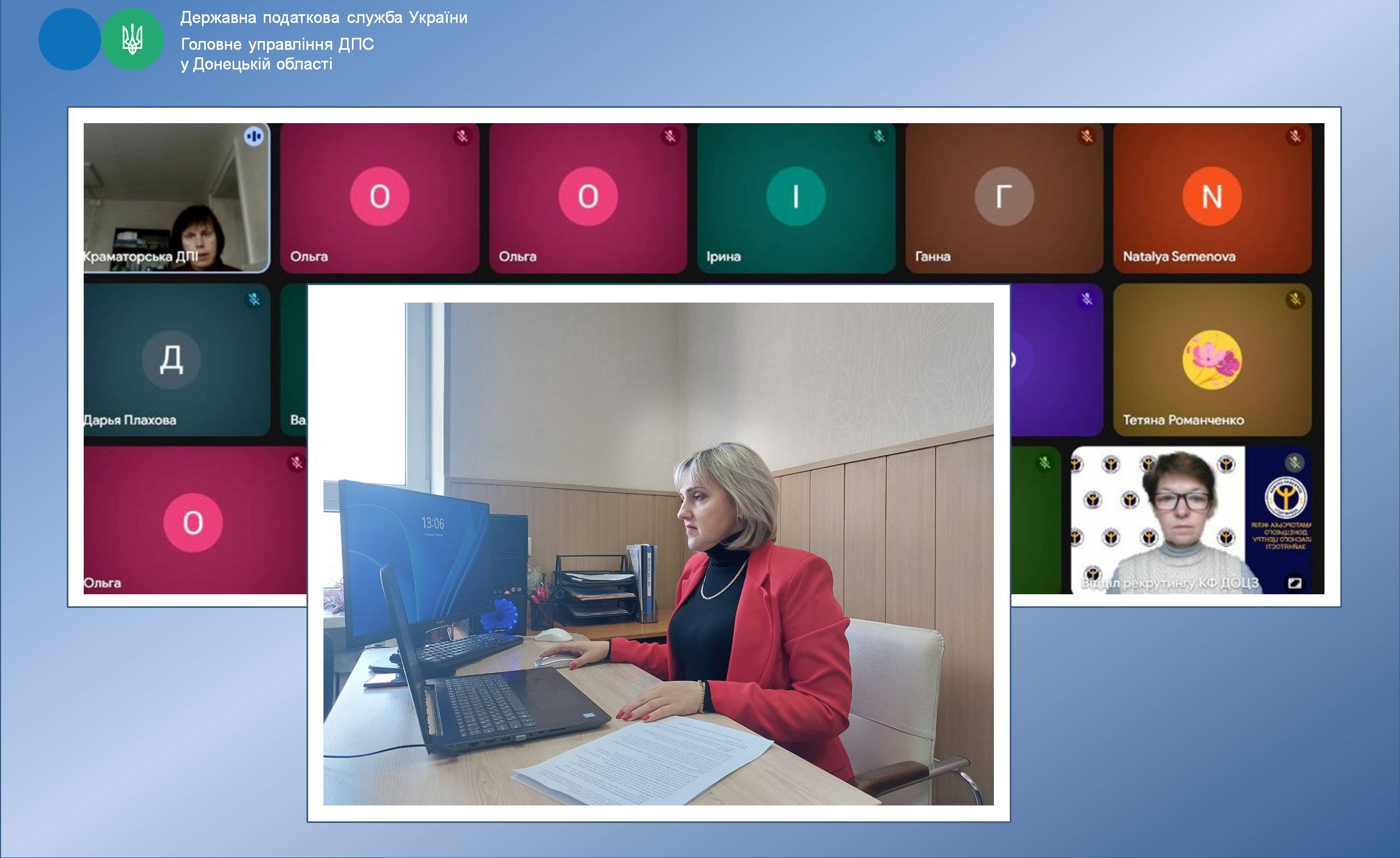 Днями начальник Краматорської державної податкової інспекції Анжеліка Зуякова, в рамках функціонування комунікаційної податкової платформи, взяла участь в спільному онлайн - заході з Краматорською філією Донецького обласного центру зайнятості для суб’єктів господарської діяльності – роботодавців.