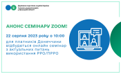 Головне управління ДПС у Донецькій області запрошує вас на семінар з актуальних питань використання РРО/ПРРО, який відбудеться 22 серпня 2023 року о 10-00.