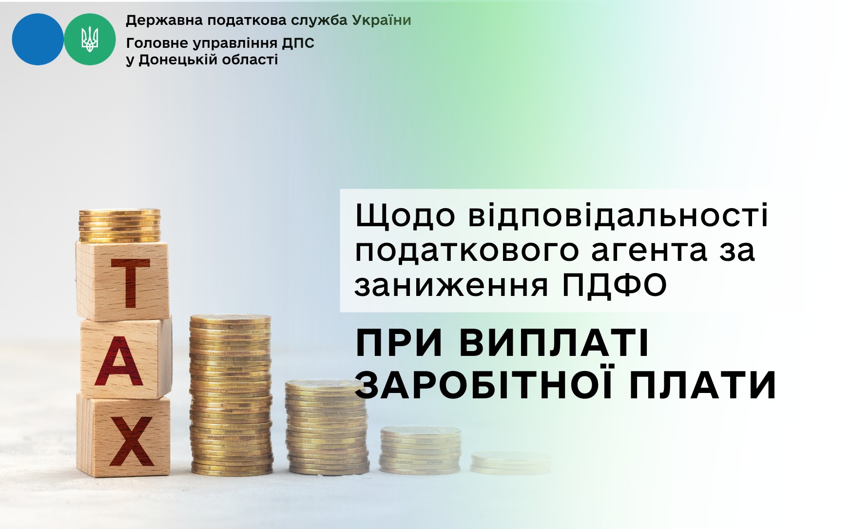 Шановні платники! Головне управління ДПС у Донецькій області нагадує, підпунктом 168.1.1 пункту 168.1 статті 168 Податкового кодексу України (далі – ПКУ) визначено, що податковий агент, який нараховує (виплачує, надає) оподатковуваний дохід на користь платника податку, зобов’язаний утримувати податок на доходи фізичних осіб (далі – ПДФО) із суми такого доходу за його рахунок, використовуючи ставку податку, визначену в статті 167 ПКУ.