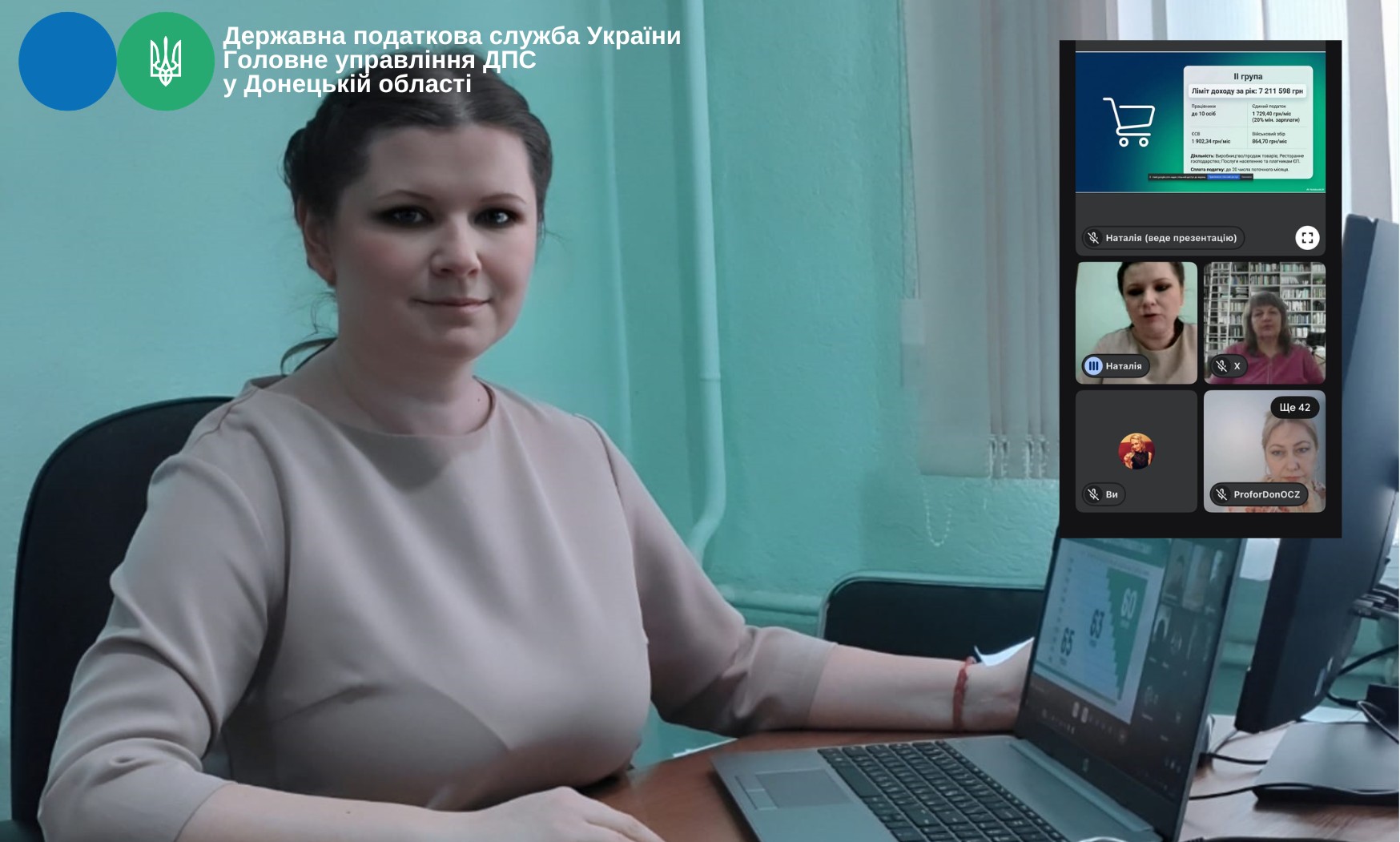Під час онлайн-заходу головний державний інспектор відділу адміністрування податків і зборів з фізичних осіб - підприємців, координації та інформаційно-аналітичного забезпечення управління оподаткування фізичних осіб ГУ ДПС у Донецькій області Наталія Барінова надала учасникам практичні інструменти для роботи та детально зупинилась на наступному:
