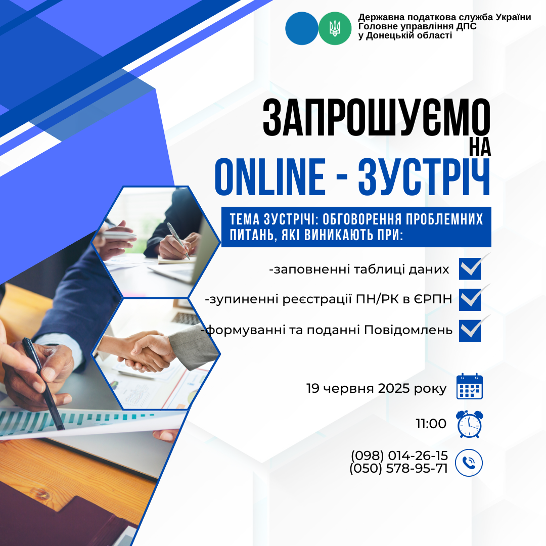 Запрошуємо платників податків Донеччини взяти участь в онлайн-зустрічі в форматі ZOOM-конференції.