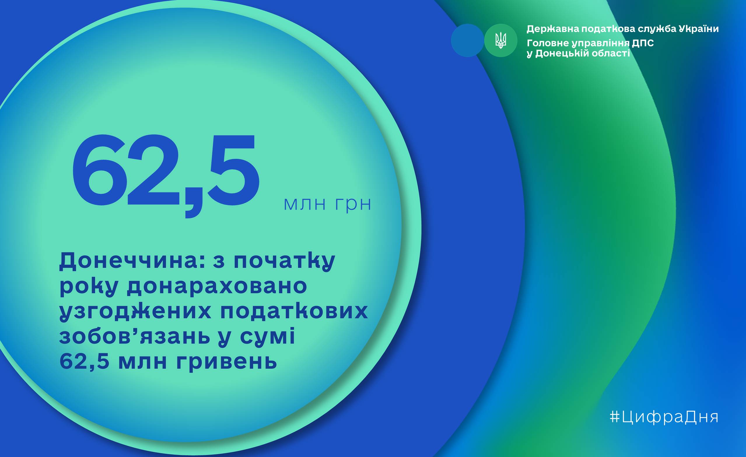 Донеччина: з початку року донараховано узгоджених податкових зобов’язань у сумі 62,5 млн гривень