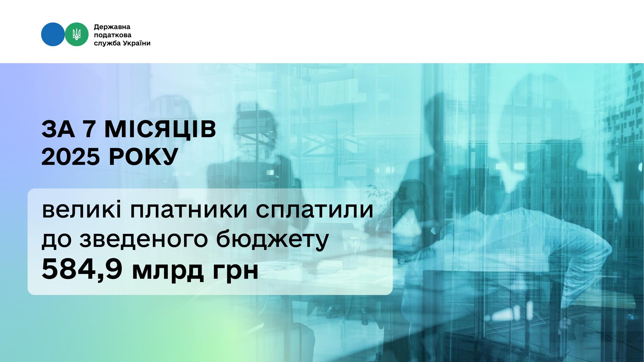 За сім місяців 2025 року великі платники, включені до Реєстру на цей рік, сплатили до зведеного бюджету 584,9 млрд грн. Це 49 % усіх надходжень країни за цей період. Про це на своїй сторінці у Facebook повідомила в. о. Голови ДПС Леся Каранух.