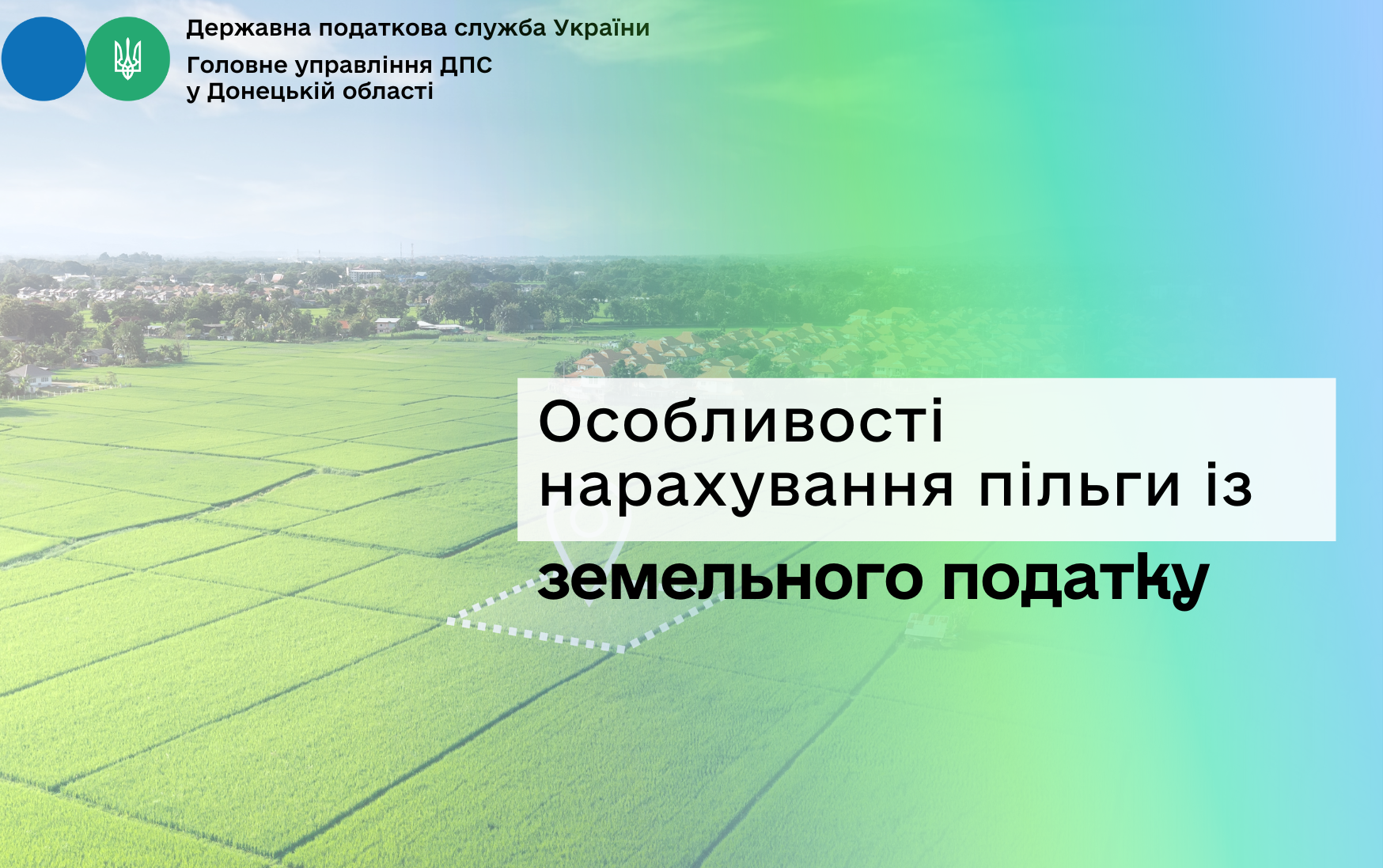 Шановні платники! Головне управління ДПС у Донецькій області нагадує, що відповідно до пункту 281.1 статті 281 ПКУ від сплати земельного податку звільняються особи з інвалідністю першої і другої групи, фізичні особи, які виховують трьох і більше дітей віком до 18 років, пенсіонери (за віком), ветерани війни та особи, на яких поширюється дія Закону України від 22 жовтня 1993 року № 3551-XII «Про статус ветеранів війни, гарантії їх соціального захисту», фізичні особи, визнані законом особами, які постраждали внаслідок Чорнобильської катастрофи.