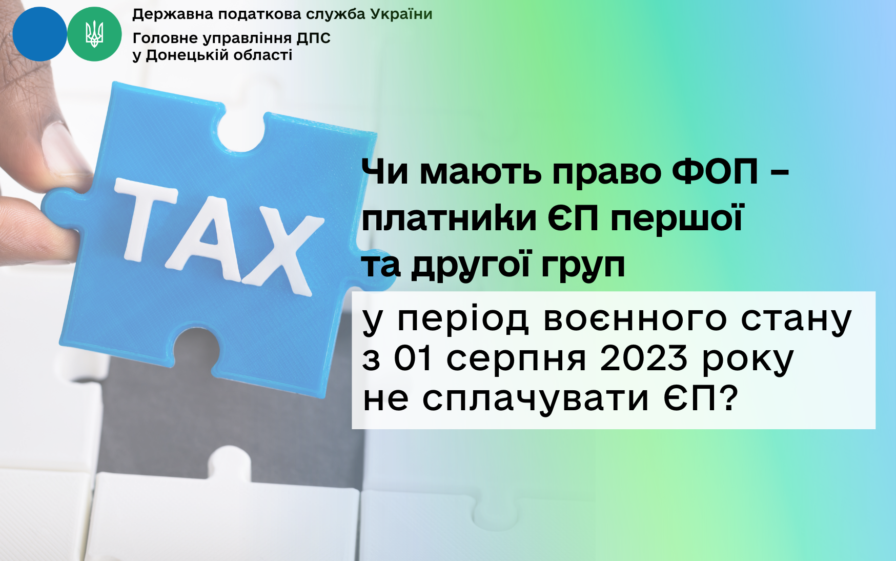 Чи мають право ФОП – платники ЄП першої та другої груп у період воєнного стану з 01 серпня 2023 року не сплачувати ЄП?