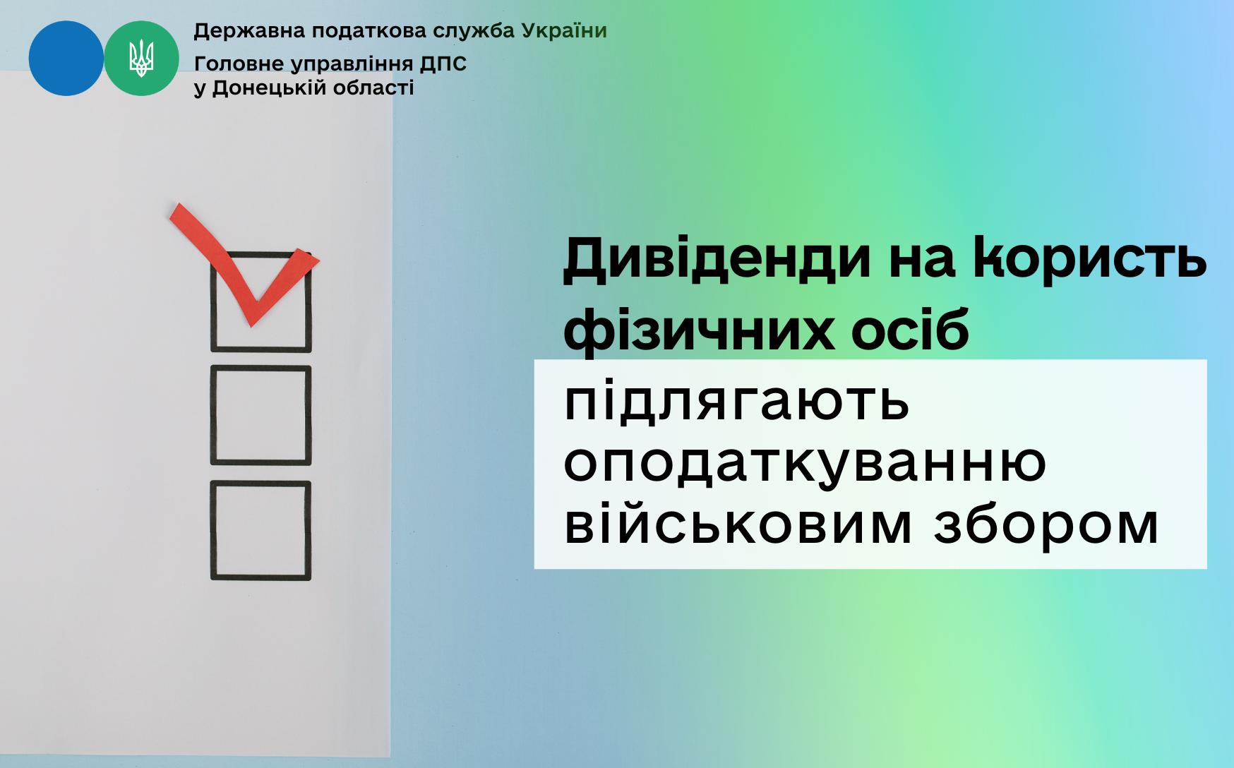 Шановні платники! Головне управління ДПС у Донецькій області нагадує, що згідно з Податковим кодексому України платниками військового збору є особи, визначені п. 162.1 ст. 162 ПКУ, зокрема, фізичні особи – резиденти (нерезиденти), які отримують доходи з джерела їх походження в Україні.