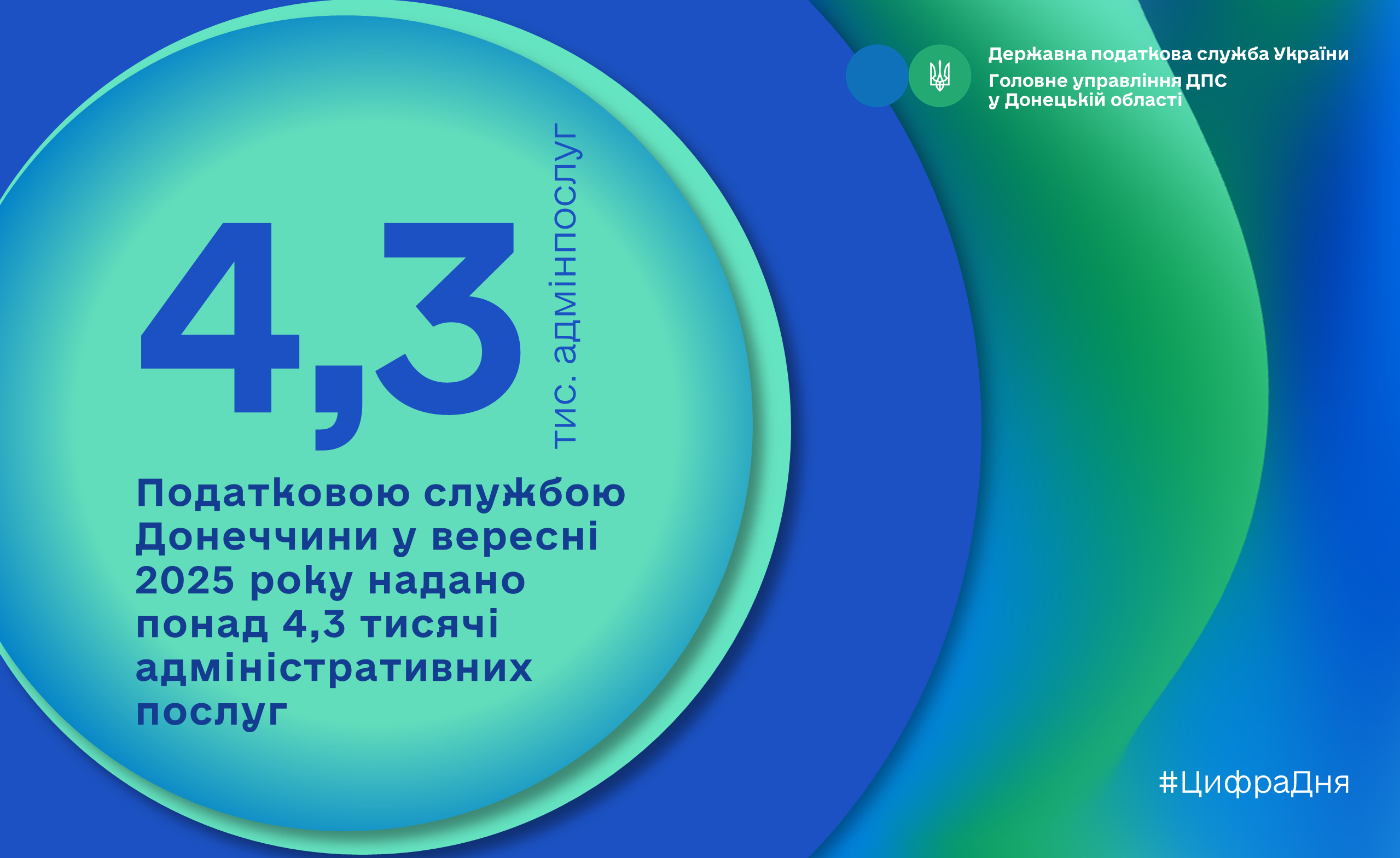 Податковою службою Донеччини у вересні 2025 року надано понад 4,3 тисячі адміністративних послуг