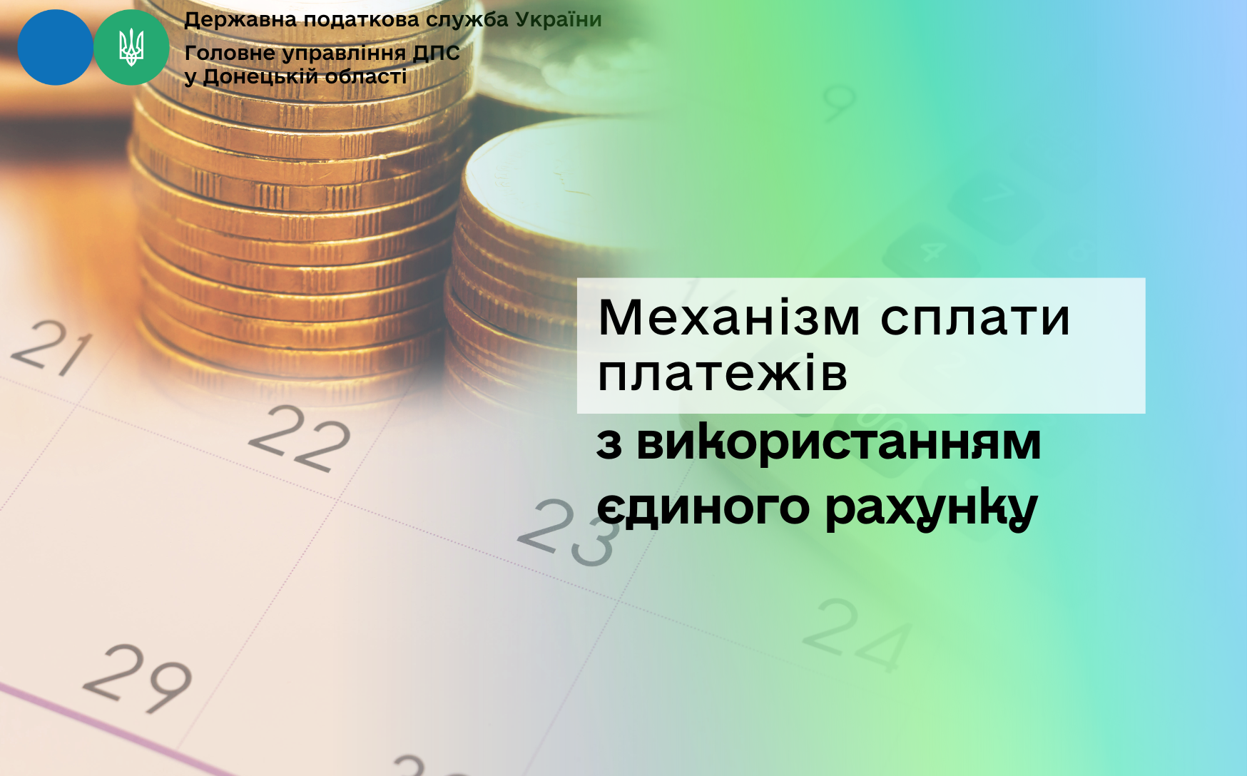 Шановні платники! Головне управління ДПС у Донецькій області нагадує про можливість використання платником податків єдиного рахунку для сплати грошових зобов`язань та/або податкового боргу з податків та зборів, єдиного внеску та інших платежів, контроль за справлянням яких покладено на податковий орган.