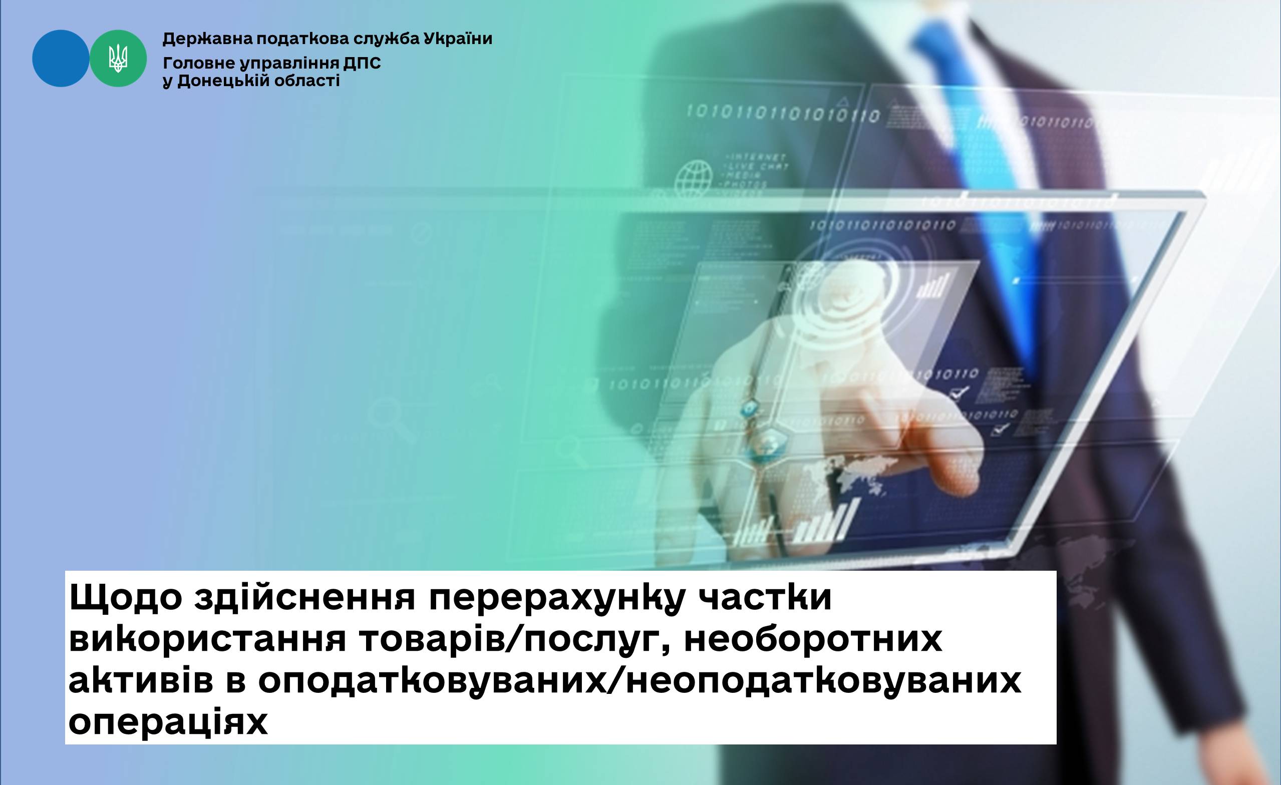 Платник податку за підсумками календарного року здійснює перерахунок частки використання товарів/послуг та необоротних активів в оподатковуваних операціях виходячи з фактичних обсягів проведених протягом року оподатковуваних та неоподатковуваних операцій (пункт 199.4 статті 199 ПКУ).