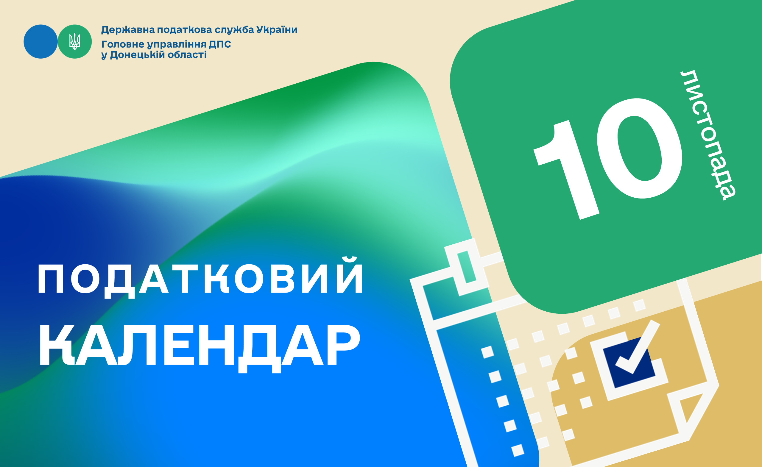 Шановні платники! Головне управління ДПС у Донецькій області нагадує, що 10 листопада 2025 року, понеділок, останній день подання: