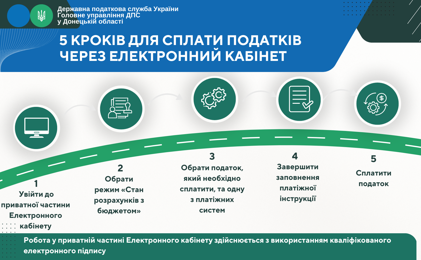 Робота у приватній частині Електронного кабінету здійснюється з використанням кваліфікованого електронного підпису. Вхід до  електронного кабінету здійснюється за адресою: (https://cabinet.tax.gov.ua), а також через офіційний вебпортал ДПС.