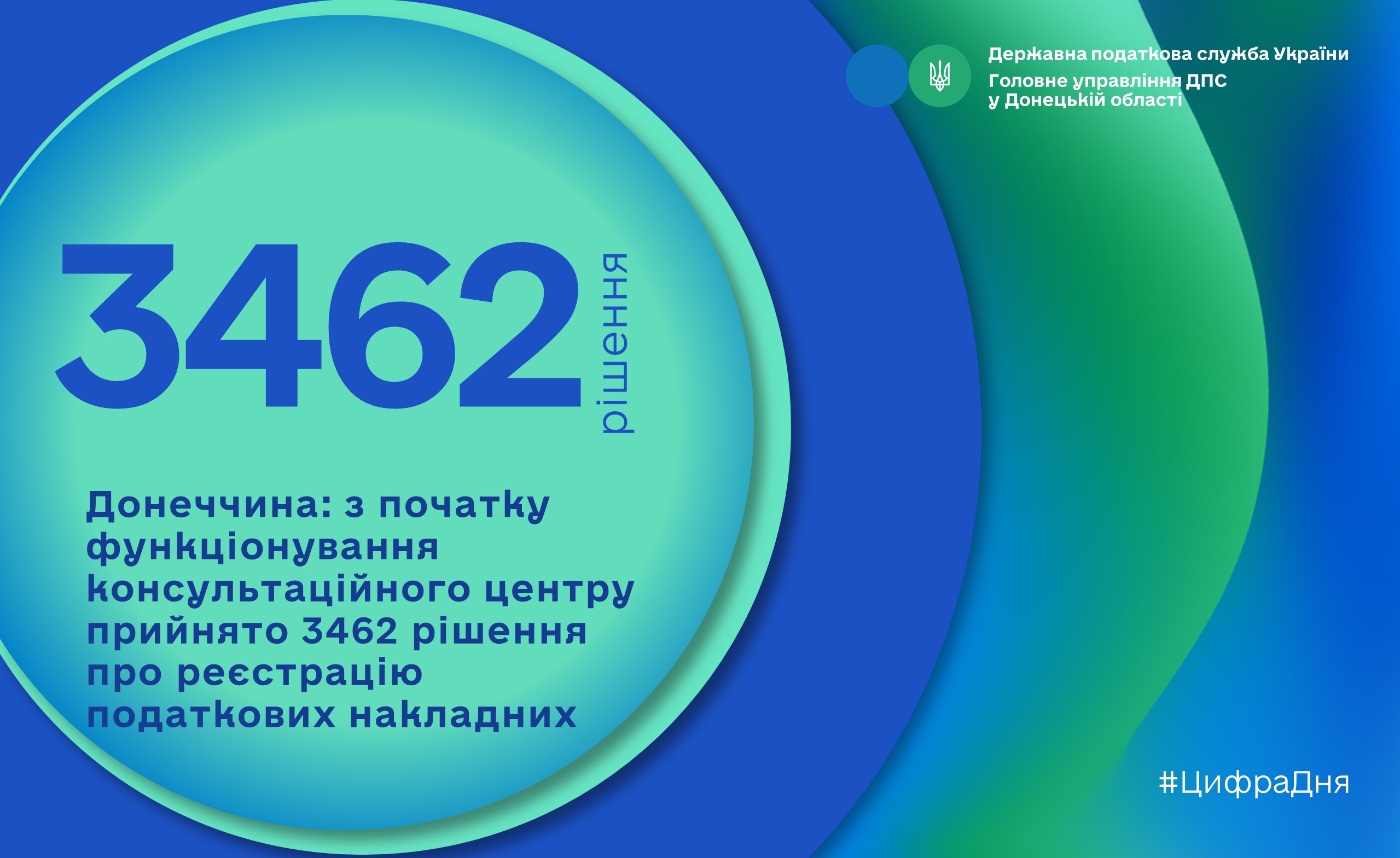 З початку функціонування консультаційного центру Комісією ГУ ДПС у Донецькій області з питань зупинення реєстрації податкової накладної/розрахунку коригування в Єдиному реєстрі податкових накладних прийнято 3462 рішення про реєстрацію податкових накладних на суму ПДВ 203,3 млн гривень.