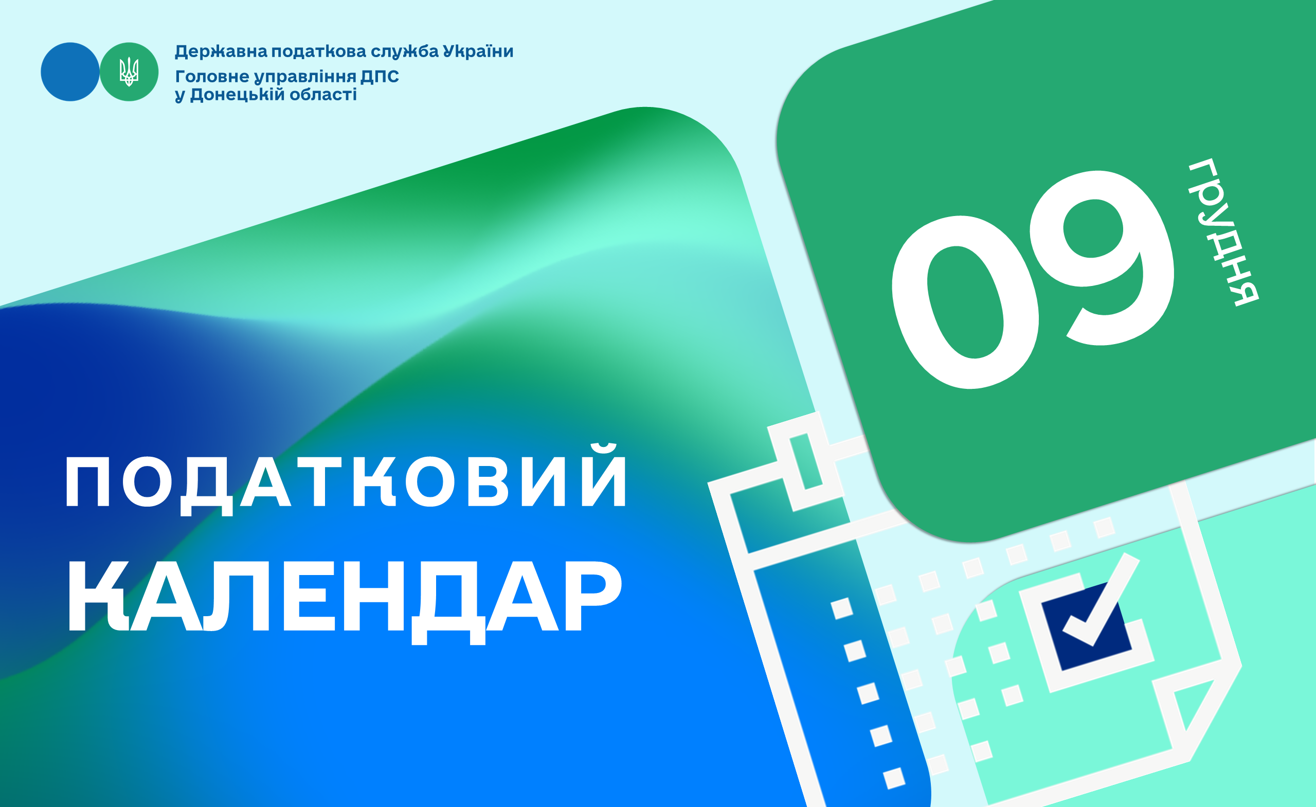 До уваги платників податків! Податковий календар на 09 грудня 2025 року