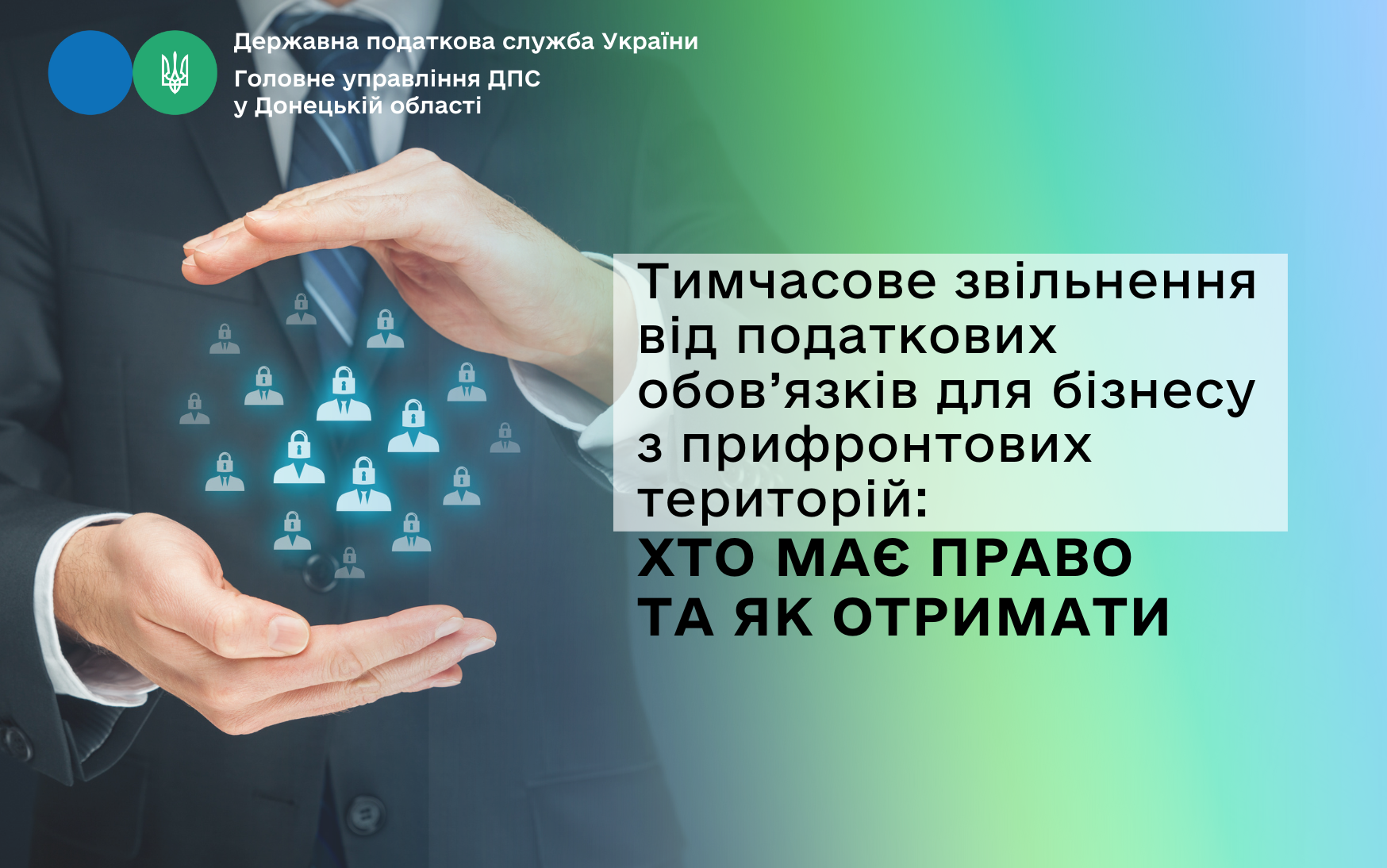 Шановні платники! Головне управління ДПС у Донецькій області інформує, що платники податків із прифронтових територій, які постраждали внаслідок бойових дій, можуть отримати тимчасове звільнення від виконання податкових обов’язків.