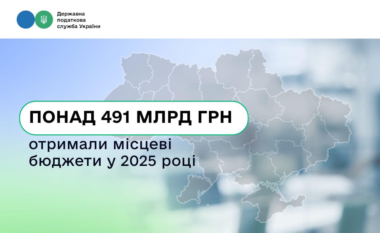 Понад 491 млрд грн податкових надходжень отримали місцеві бюджети у 2025 році. Це на 13,4 % більше, ніж у 2024 році. Про це на своїй сторінці у Facebook заявила в. о. Голови Державної податкової служби Леся Карнаух.