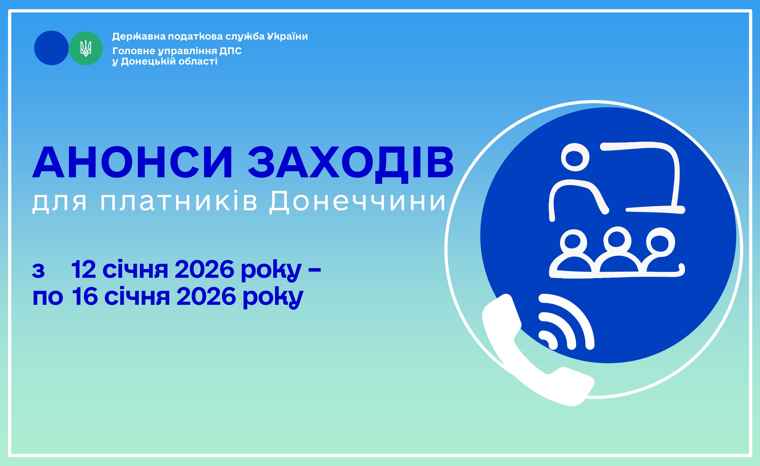 До уваги платників! Анонси заходів податкової Донеччини на 12 січня – 16 січня 2026 року