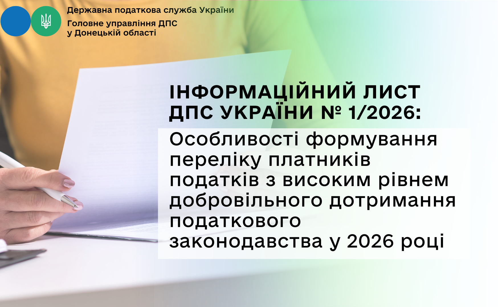 Інформаційний лист № 1/2026: Особливості формування переліку платників податків з високим рівнем добровільного дотримання податкового законодавства у 2026 році