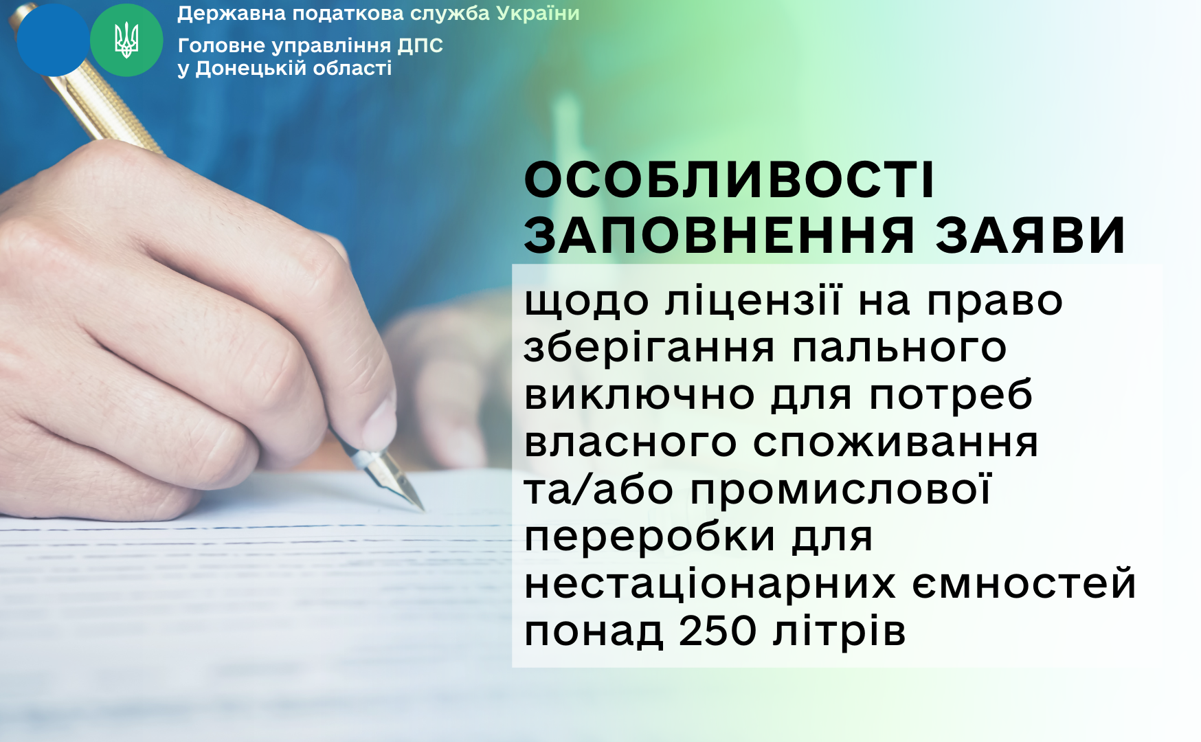 Особливості заповнення заяви щодо ліцензії на право зберігання пального виключно для потреб власного споживання та/або промислової переробки для нестаціонарних ємностей понад 250 літрів