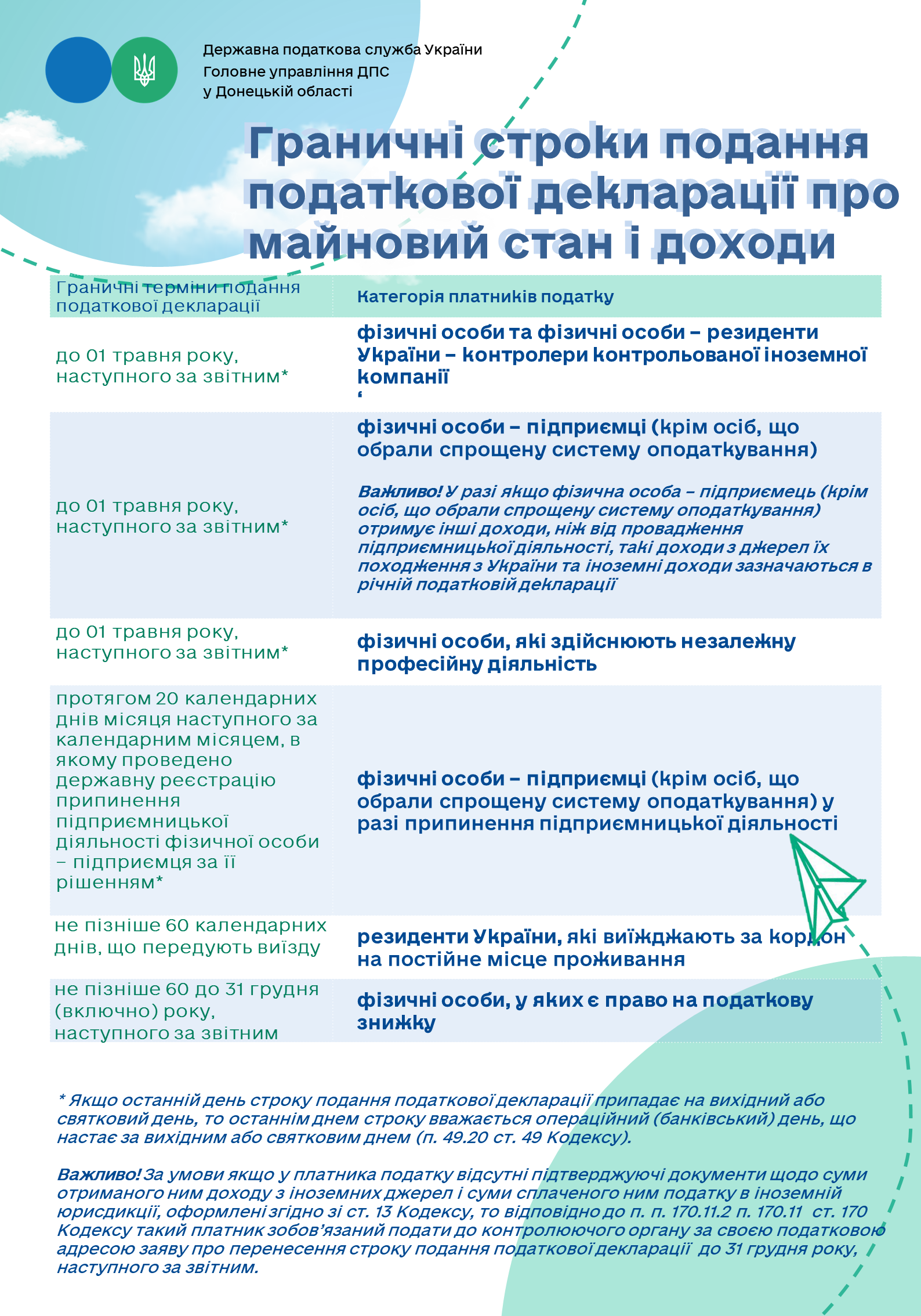 Граничні строки подання податкової декларації про майновий стан і доходи