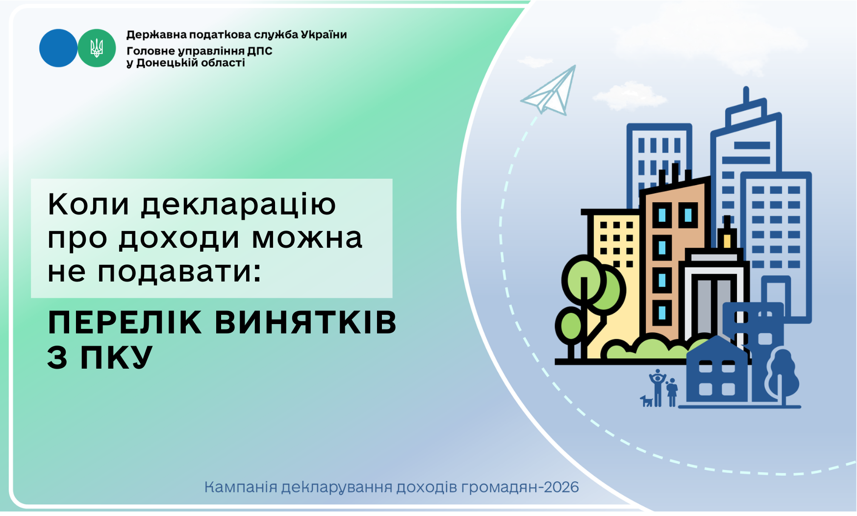 Шановні платники! Головне управління ДПС у Донецькій області нагадує, що податкова декларація про майновий стан і доходи подається не у всіх випадках. Тож. відповідно до п. 179.4 ст. 179 Кодексу звільняються від обов'язку подання декларації у випадках, якщо платниками податку є: