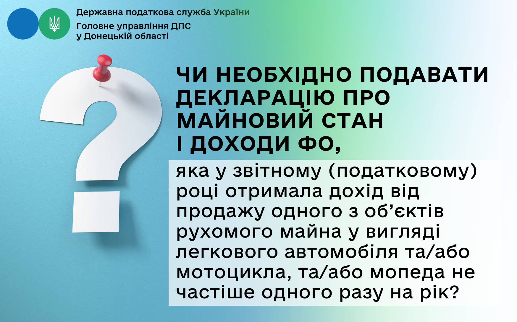 Враховуючи викладене, якщо фізична особа отримала дохід від продажу (обміну) протягом звітного (податкового) року одного з об’єктів рухомого майна у вигляді легкового автомобіля та/або мотоцикла, та/або мопеда, то такий дохід відповідно до п. 173.2 ст. 173 ПКУ не оподатковується податком на доходи фізичних осіб, тобто у фізичної особи не виникає обов’язку щодо сплати податку. Подавати річну податкову декларацію про майновий стан і доходи у такому випадку не потрібно.