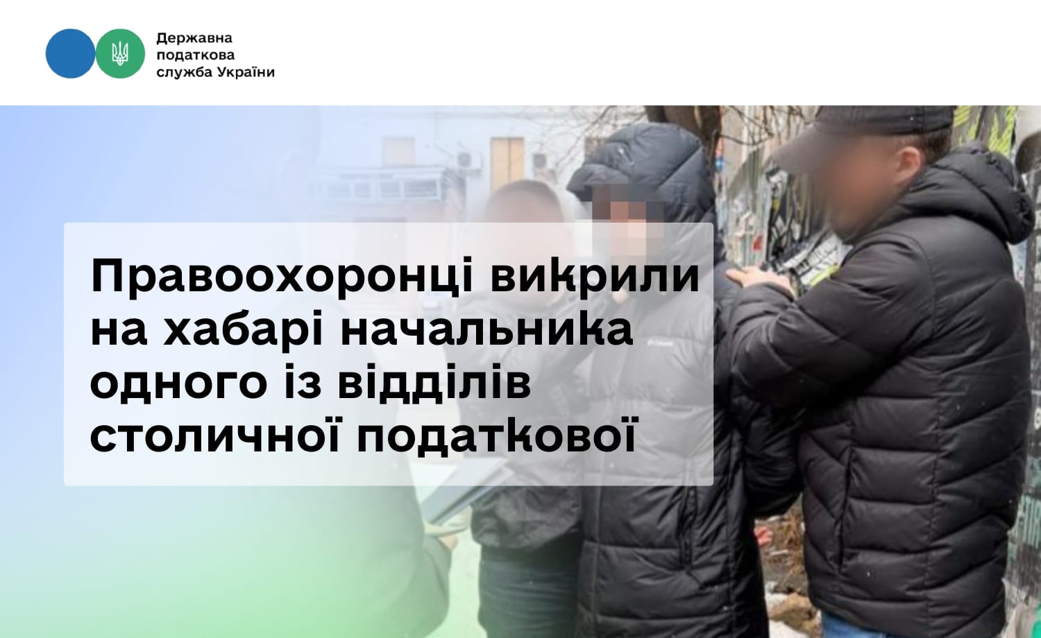 Київська обласна прокуратура та ГУ «Д» ДЗНД СБУ затримали під час одержання неправомірної вигоди працівника Головного управління ДПС у м. Києві. Викриття відбулося за сприяння керівництва Державної податкової служби.