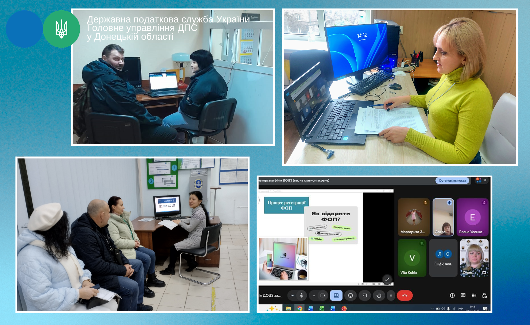 Одним із заходів став спільний онлайн-семінар Краматорської державної податкової інспекції з Краматорською філією Донецького обласного центру зайнятості на тему «Генеруй бізнес-ідею та розпочни свій бізнес». У заході взяла участь начальник Краматорської ДПІ Анжеліка Зуякова. Під час зустрічі учасники отримали практичні поради щодо державної реєстрації підприємницької діяльності, вибору системи оподаткування, сплати податку на доходи фізичних осіб, військового збору та єдиного соціального внеску. Також обговорювалися питання оподаткування доходів від підприємницької діяльності, звітування за найманих працівників, застосування податкової соціальної пільги та можливості отримання податкової знижки. Окрему увагу приділили електронним сервісам держави – зокрема застосунку «Дія», Електронному кабінету платника та мобільному застосунку «Моя податкова».