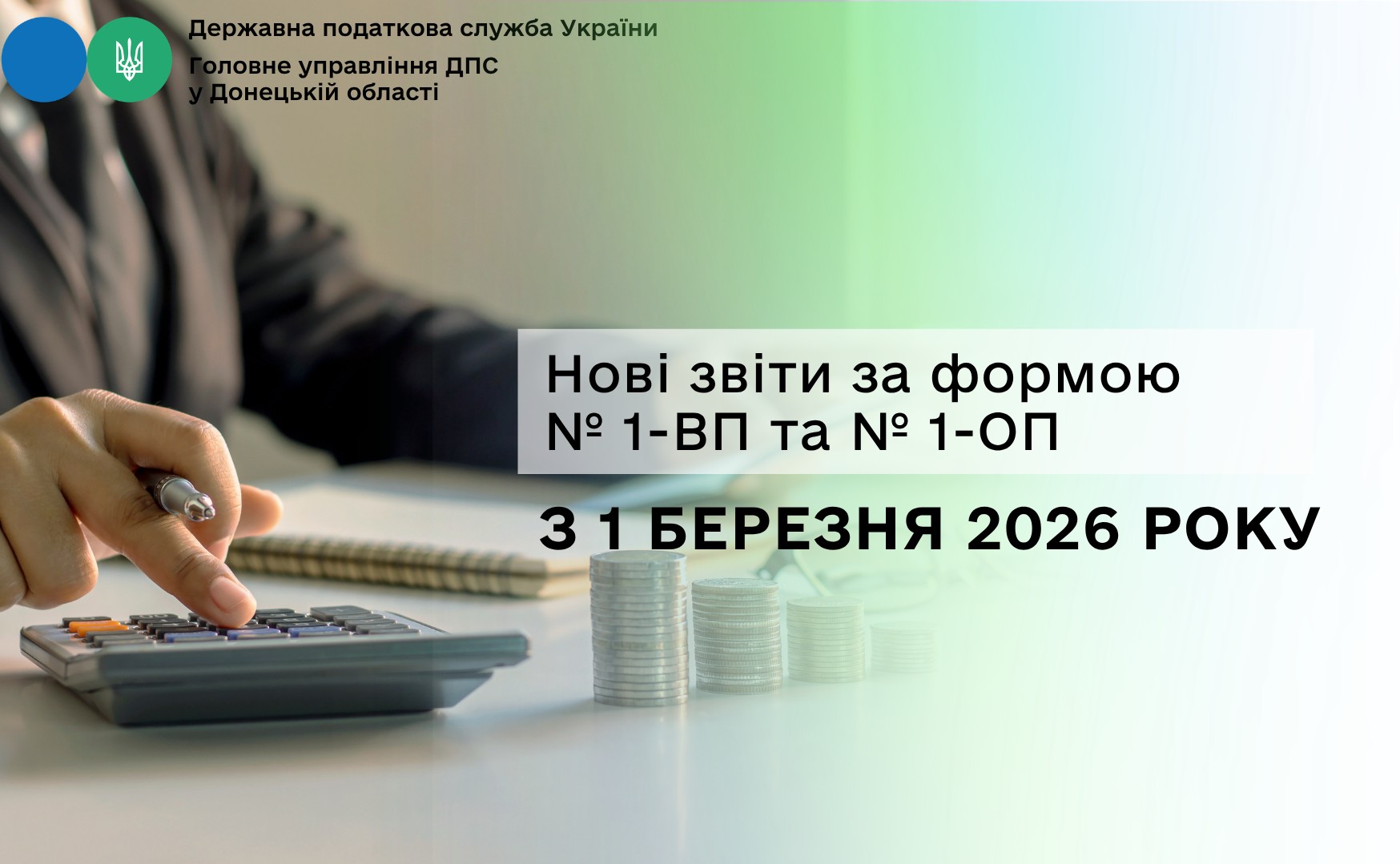 Шановні платники! Головне управління ДПС у Донецькій області інформує, що з 01 березня 2026 року запроваджуються нові форми звітів: № 1-ВП «Звіт про залишки та обсяги виробництва та/або обігу (в тому числі ввезення на митну територію України, вивезення за межі митної території України) спирту етилового, спиртових дистилятів, біоетанолу, алкогольних напоїв, тютюнових виробів, рідин, що використовуються в електронних сигаретах, про залишки та обсяги придбання і використання тютюнової сировини, про обсяг (вагу) придбаної неферментованої тютюнової сировини, обсяг (вагу) виробленої ферментованої тютюнової сировини, обсяг (вагу) реалізованої ферментованої тютюнової сировини, обсяг (вагу) залишків неферментованої та ферментованої тютюнової сировини на кінець звітного періоду, про залишки та обсяг вирощування тютюну і реалізації тютюнової сировини, посівну площу» (далі – Звіт форми № 1-ВП), № 1-ОП «Звіт про залишки та обсяги обігу (в тому числі ввезення на митну територію України, вивезення за межі митної території України) спирту етилового, спиртових дистилятів, біоетанолу, алкогольних напоїв, тютюнових виробів, тютюнової сировини (у тому числі ферментованої тютюнової сировини), рідин, що використовуються в електронних сигаретах» (далі – Звіт форми № 1-ОП), що затверджені наказом Міністерства фінансів України від 22.12.2025 №641 «Про затвердження форм звітності про залишки, обсяги виробництва, обігу (в тому числі ввезення на митну територію України, вивезення за межі митної території України) спирту етилового, спиртових дистилятів, біоетанолу, алкогольних напоїв, тютюнових виробів, рідин, що використовуються в електронних сигаретах, тютюнової сировини, обсяги вирощування тютюну, посівну площу, порядку їх подання та заповнення, Кодів, одиниць виміру та видів продукції/товару/сировини» (далі – Наказ № 641), який опубліковано в Офіційному віснику України від 30.01.2026 № 9.