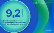 У січні - серпні 2025 року платниками податків Донецької області забезпечено перерахування до загального та спеціального фондів в розмірі 9,2 млрд гривень, що більше за показники попереднього року на 609,5 млн гривень, або на 7,1%.
