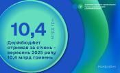 Держбюджет отримав за січень – вересень 2025 року 10,4 млрд гривень