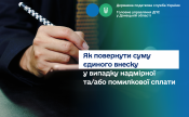 У випадку помилкової сплати сум єдиного внеску повернення коштів здійснюється відповідно до Порядку зарахування у рахунок майбутніх платежів єдиного внеску на загальнообов’язкове державне соціальне страхування або повернення надміру та/або помилково сплачених коштів, затвердженого наказом Міністерства фінансів України від 23.07.2021 № 417, зареєстрованого в Міністерстві юстиції України 09 вересня 2021 р. за № 1185/36807 (далі - Порядок № 417).