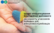 Щодо оподаткування благодійної допомоги на користь учасників бойових дій, військовослужбовців