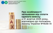 Про особливості звільнення від сплати єдиного внеску з 01 жовтня 2025 року, відповідно до положень Закону України №4536-ІХ