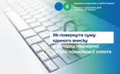 У випадку помилкової сплати сум єдиного внеску повернення коштів здійснюється відповідно до Порядку зарахування у рахунок майбутніх платежів єдиного внеску на загальнообов’язкове державне соціальне страхування або повернення надміру та/або помилково сплачених коштів, затвердженого наказом Міністерства фінансів України від 23.07.2021 № 417, зареєстрованого в Міністерстві юстиції України 09 вересня 2021 р. за № 1185/36807 (далі - Порядок № 417).